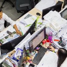 Office and staff photography during a one day photoshoot at CMED head office in Phnom Penh, Cambodia. CMED Group provides a range of construction and property development related services and equipment. The client wanted these images to show the staff at work around the office, creating the feel of an enjoyable, modern, and dynamic working environment. The photographs were shot using a simple speedlite and reflector setup as the equipment had to be minimal and mobile in order to easily move around the various different locations inside the office. The final photos are to be used on their website, company profile, and other corporate marketing collateral. As part of the shoot, I also shot the corporate portraits for their senior management.
