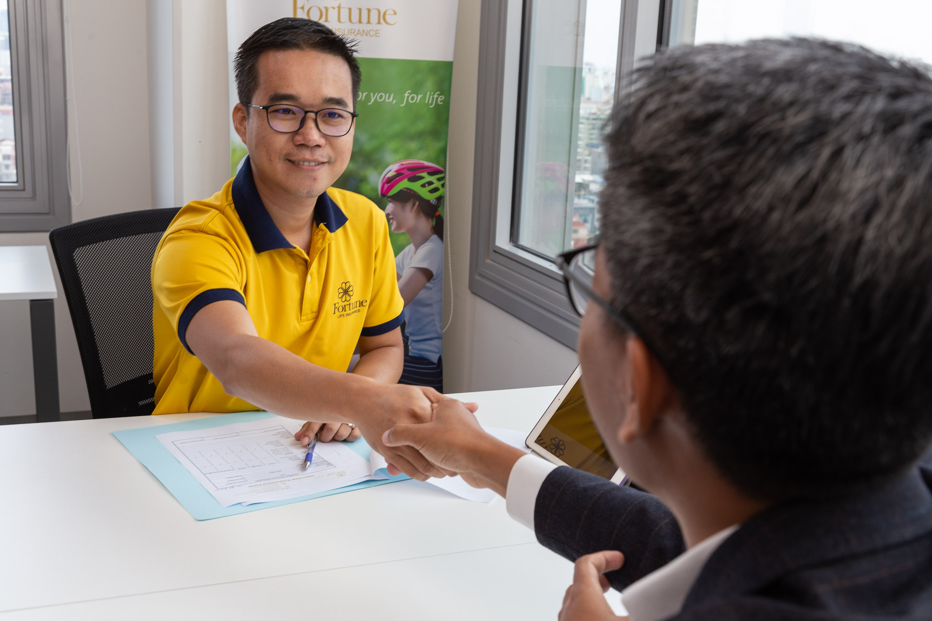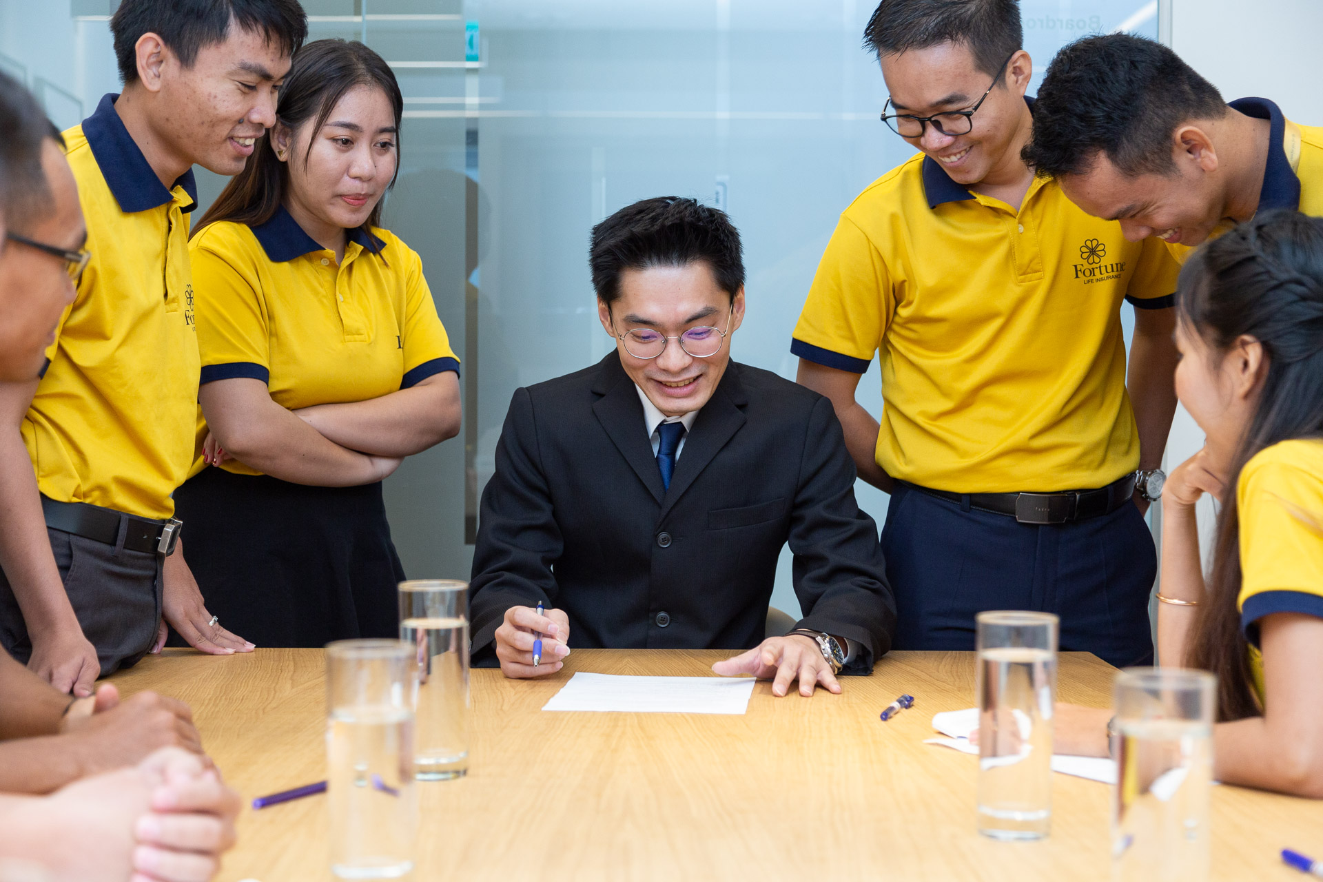 Corporate photography and lifestyle photography for Fortune Life – a new life insurance company in Cambodia. The shoot covered one day to show their large and dynamic team at work. The photographs feature staff members and stand-in customers to tell the story of their workplace. The large set of final photographs are used in their website design, print design, and digital marketing on social media.