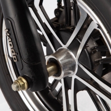 Photoshoot for an electric motorbike. Large on-location product photoshoot for Oyika, a electric vehicle startup based in Cambodia. These images were shot with a large 3m x 6m black and white cloth backgrounds and studio lighting. The final motorbike product photographs will be used on the Oyika website, social media, and printed marketing materials.