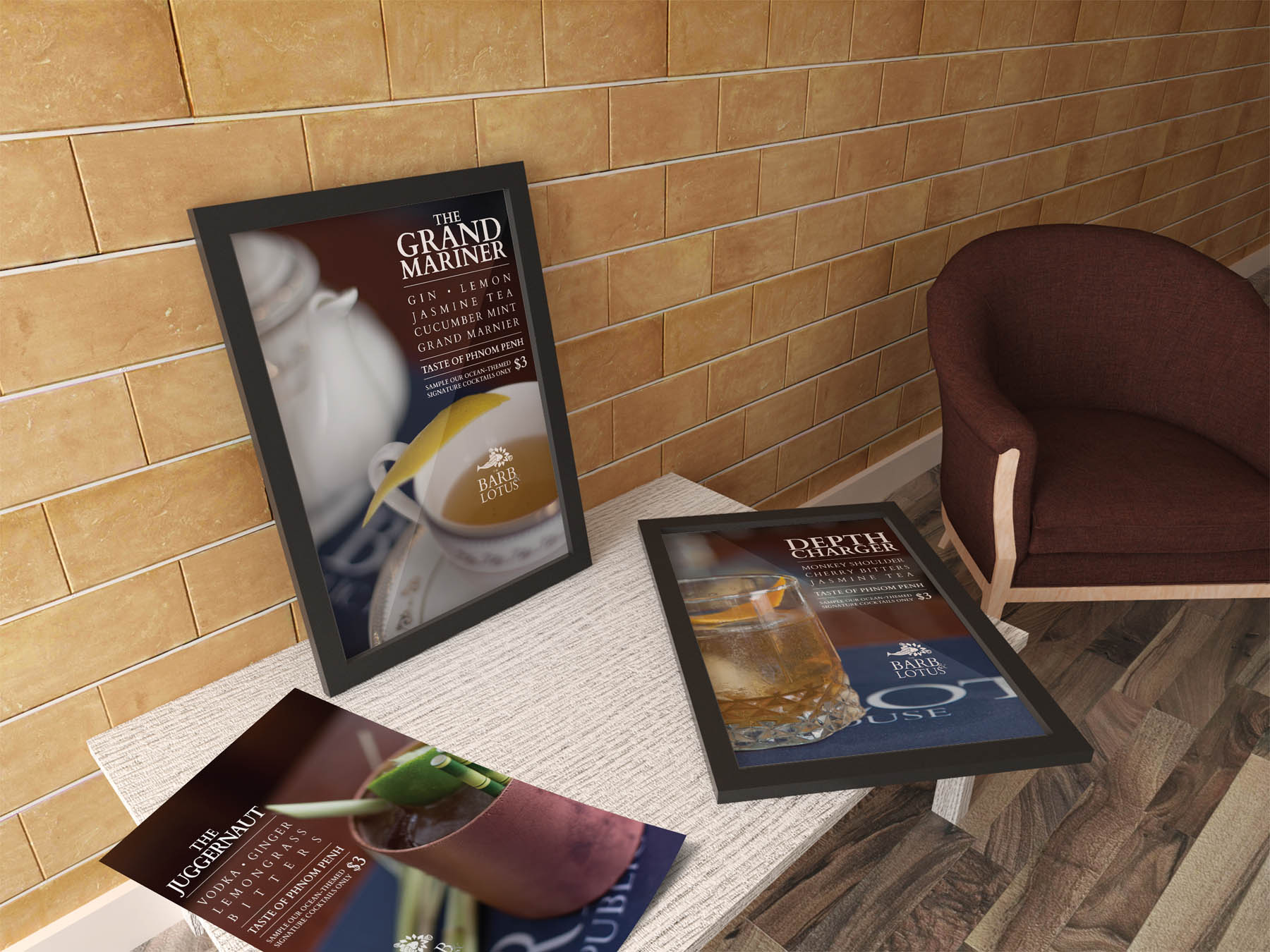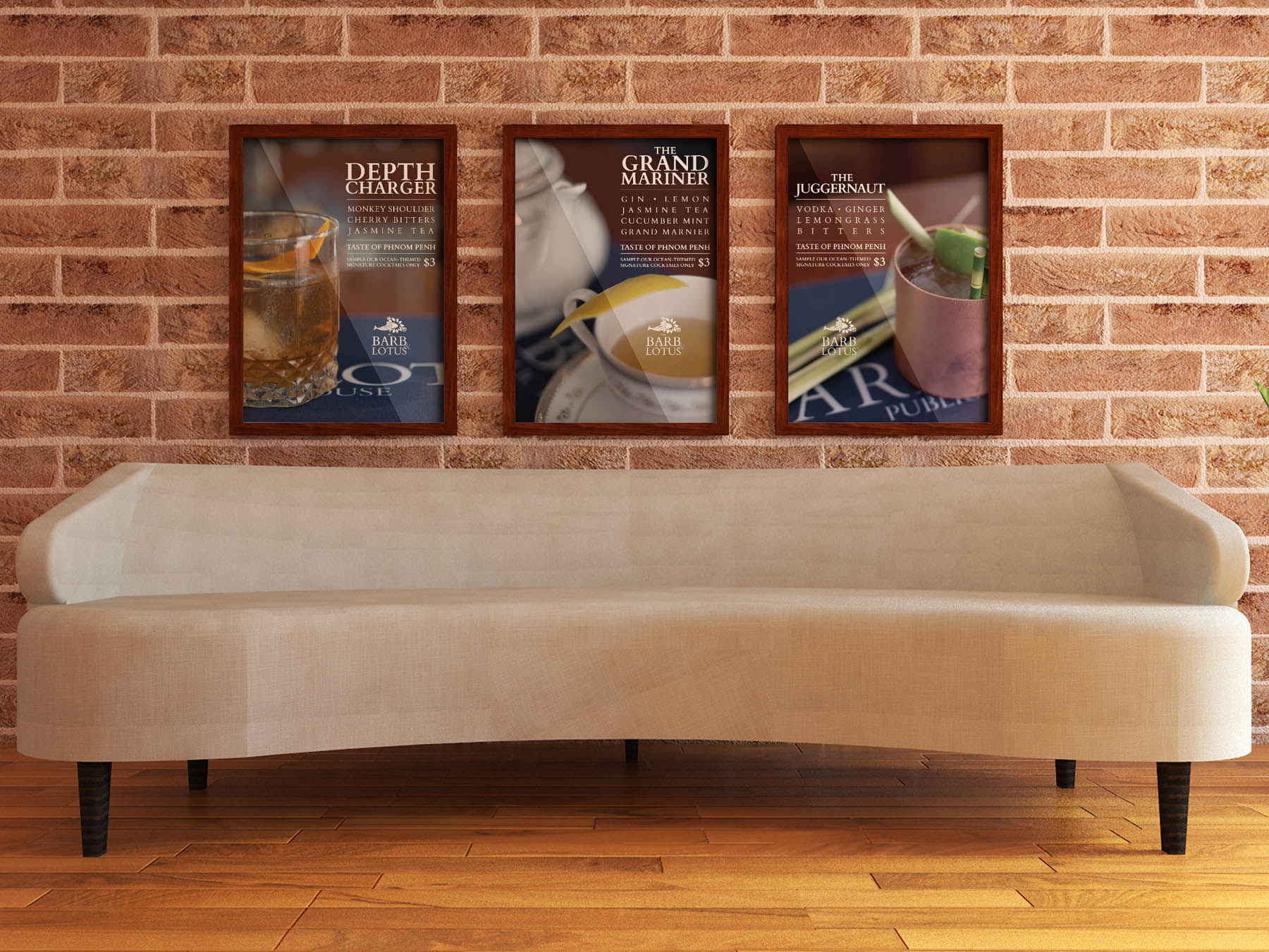 Promotional poster designs for The Barb & Lotus promoting their signature cocktails for an event in Phnom Penh, Cambodia. Part of the branding and website design project for the bar and restaurant.