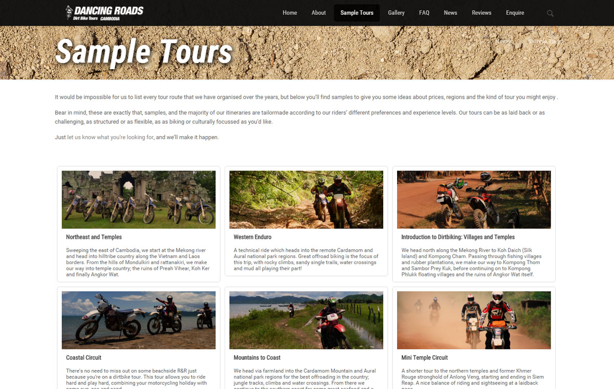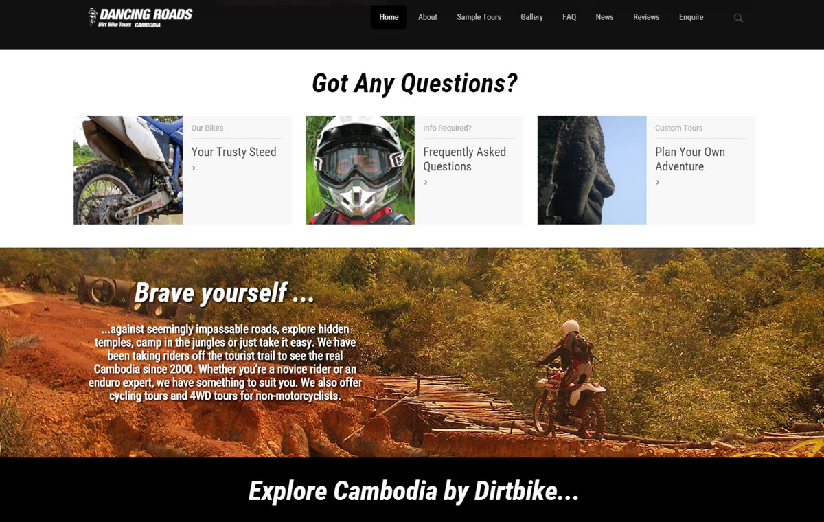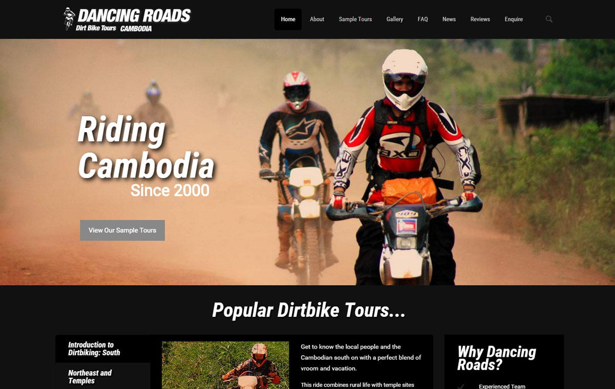 Website design project for the dirt bike tour company Dancing Roads Cambodia.