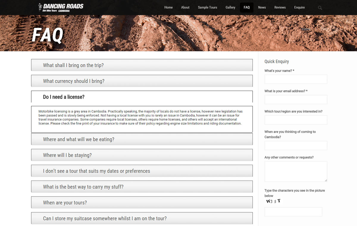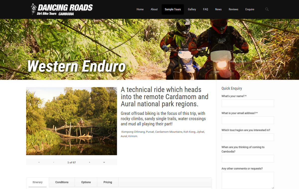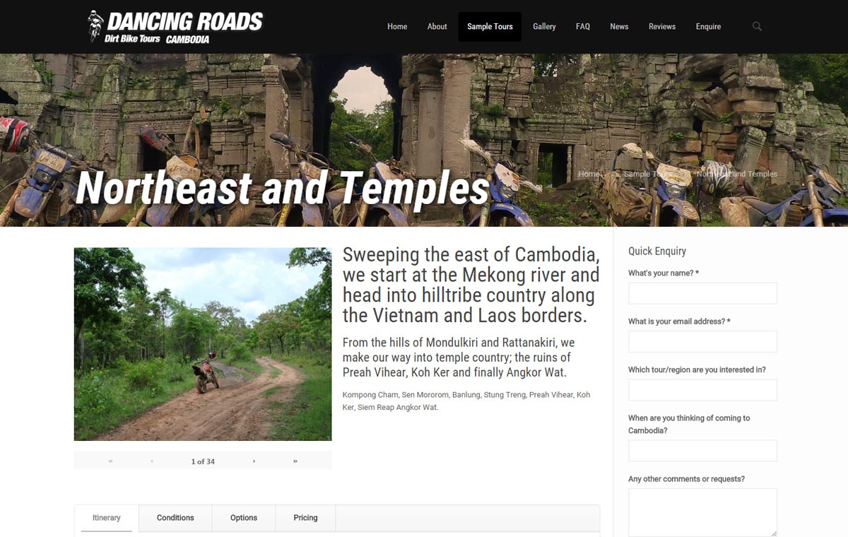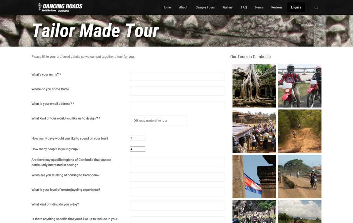 Website design project for the dirt bike tour company Dancing Roads Cambodia.