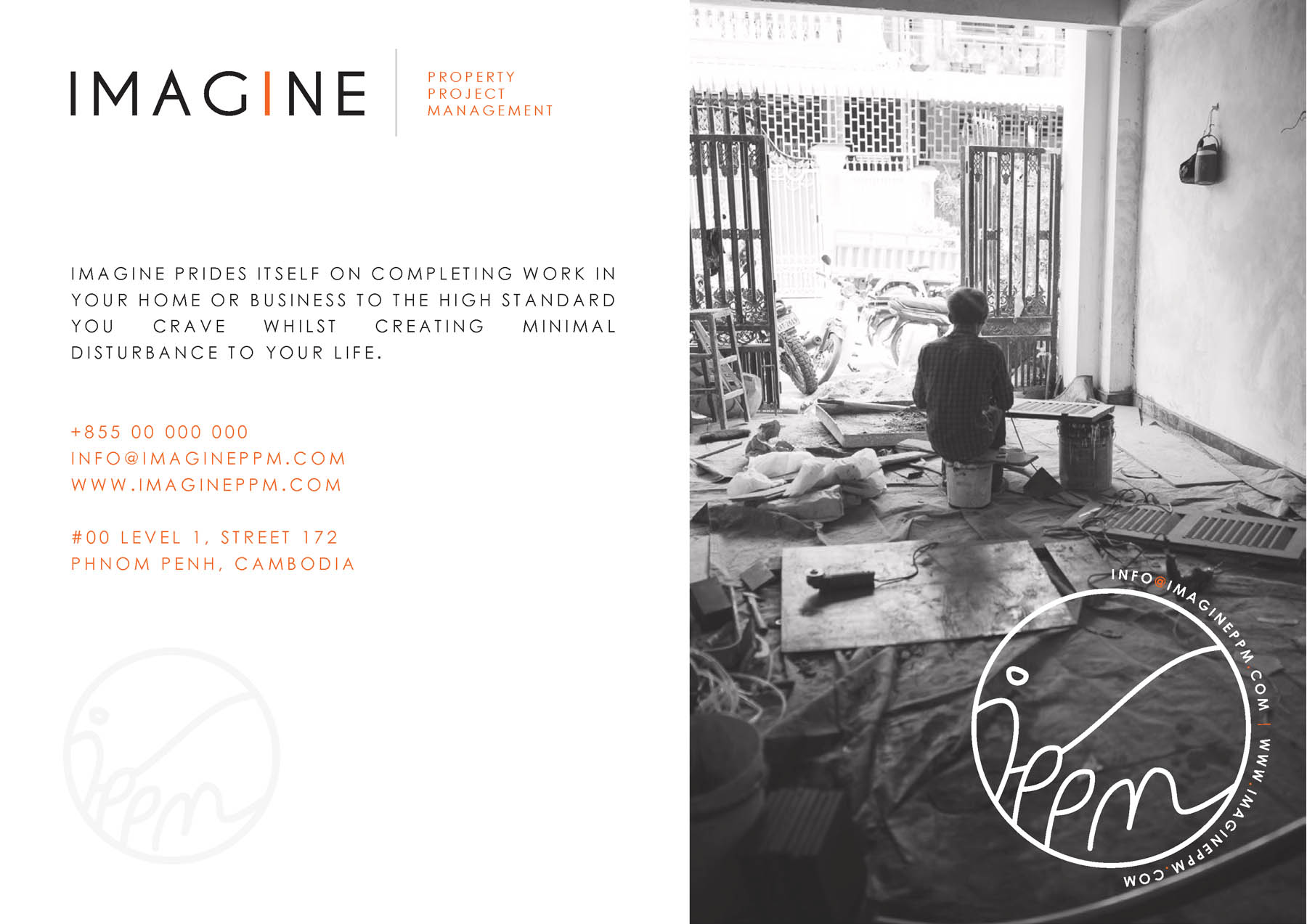 Rebranding project to design a new logo and supporting brand artwork for Imagine Property Project Management in Phnom Penh. A new website was also designed as part of the rebrand design work.