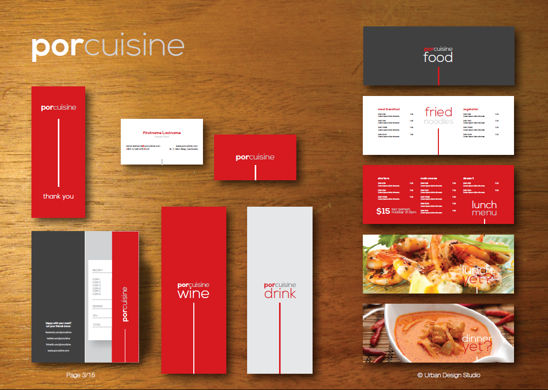 Restaurant logo design, branding, corporate stationery and menu design for Por Cuisine Restaurant in Siem Reap, work conducted via Urban Design Studio in Phnom Penh, Cambodia.