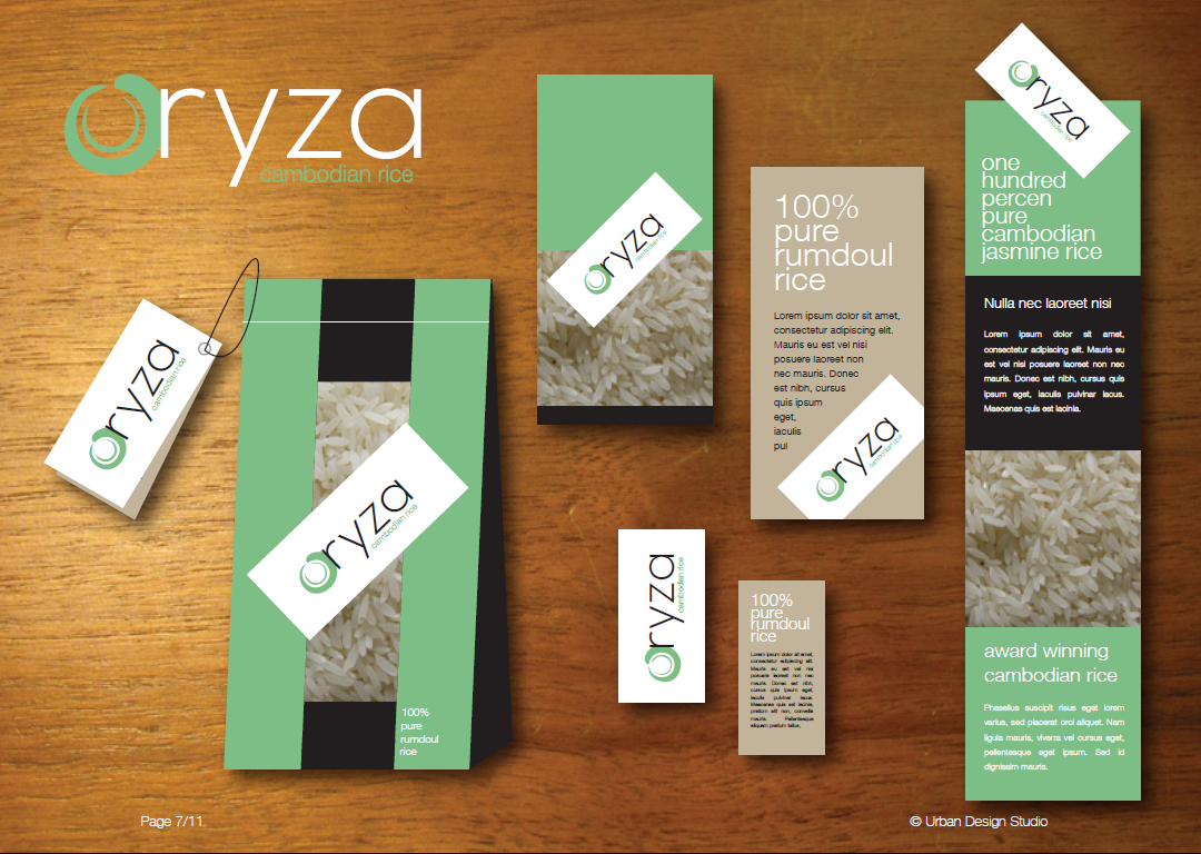 Logo, branding and packaging concept design for Cambodian rice local and international products, work conducted via Urban Design Studio in Phnom Penh, Cambodia.